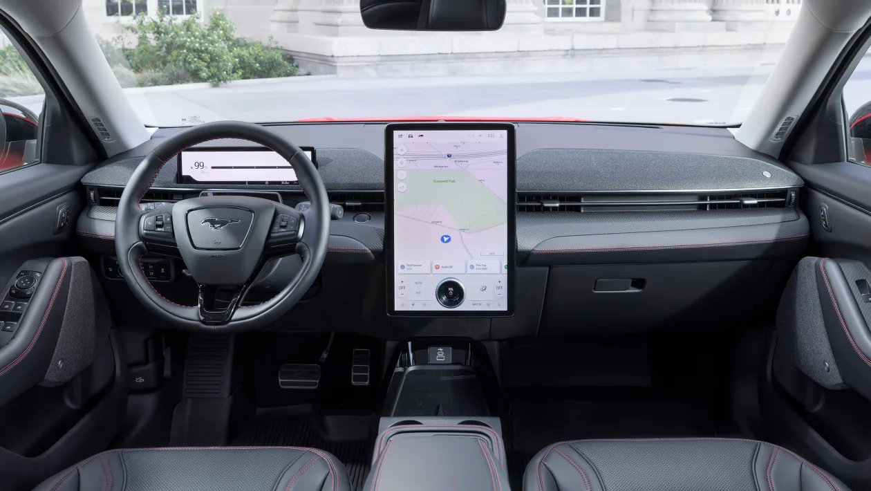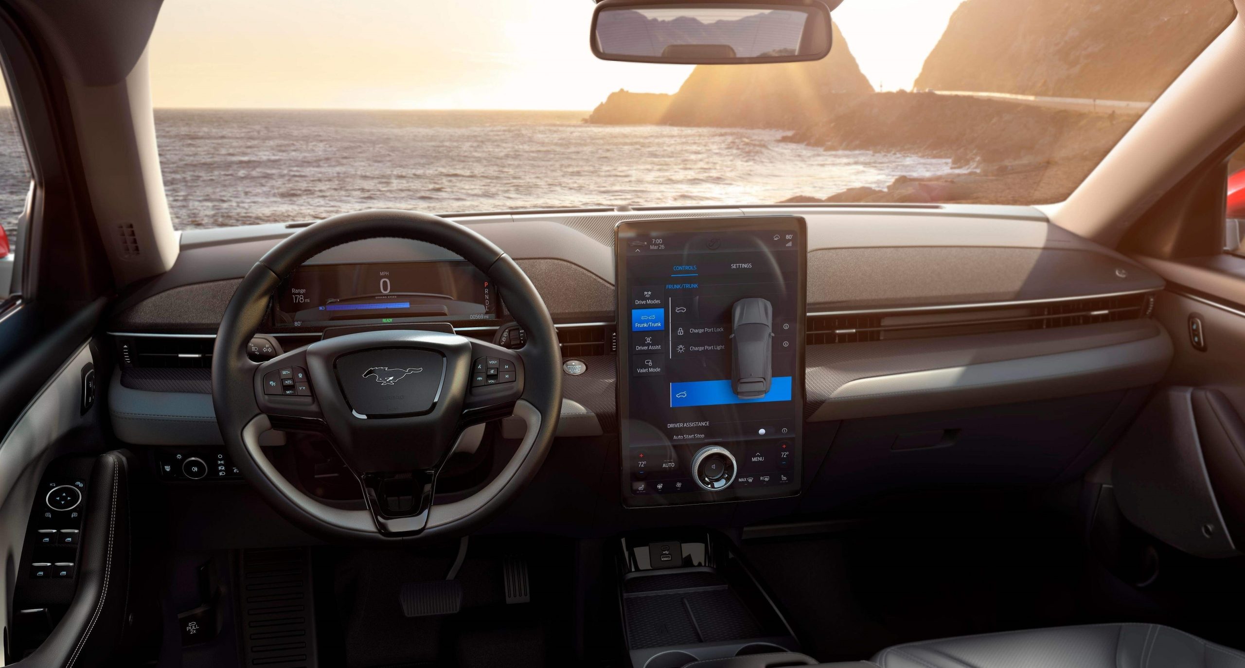 Nội thất hiện đại – công nghệ đỉnh cao Bên trong, Ford Mustang Mach-E gây ấn tượng với không gian cabin rộng rãi, tối giản nhưng sang trọng.