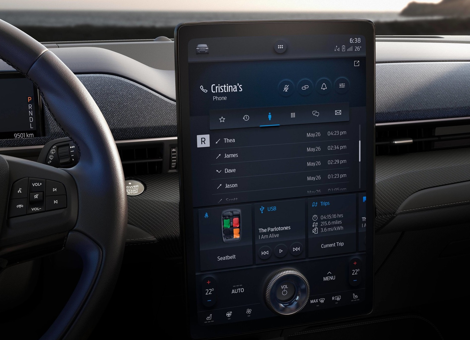 Màn hình cảm ứng trung tâm lên đến 15.5 inch đặt dọc, tích hợp hệ điều hành SYNC® 4A thông minh, hỗ trợ Apple CarPlay/Android Auto không dây. Cụm đồng hồ kỹ thuật số 10.2 inch hiển thị đầy đủ thông tin vận hành, giúp người lái dễ dàng kiểm soát.