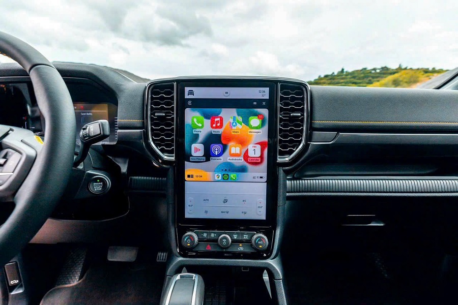 Ford Ranger 2025 được nhiều chuyên gia và khách hàng đánh giá cao ở khoang nội thất được làm mới hoàn toàn so với thế hệ tiền nhiệm.Điểm nhấn nổi bật nhất chính là màn hình thông tin giải trí cỡ lớn 12” đặt dọc ở khu vực trung tâm. Đây là trang bị được khách hàng mong chờ nhất khi Ranger thế hệ mới lần đầu được giới thiệu ở thị trường quốc tế. Ngay cả mẫu xe “đàn anh” Ford Explorer 2022 được bán ra tại Việt Nam cũng không có trang bị này.